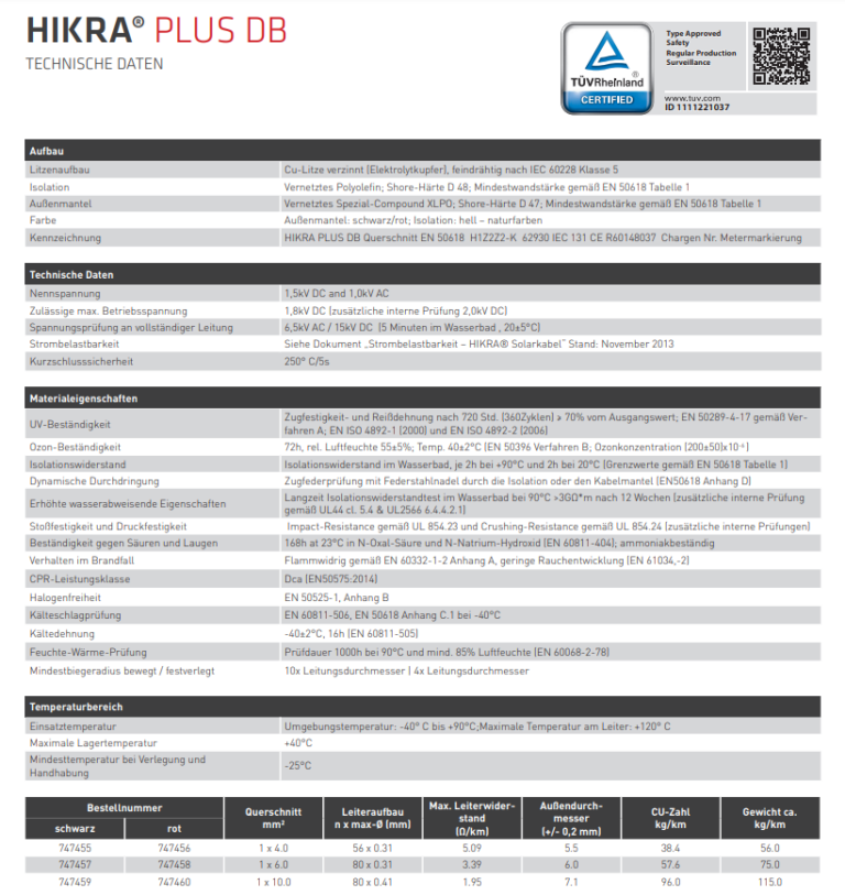 • Nennspannung (Uo/U): AC 0,6/1,0kv / DC 0,9/1,5kv