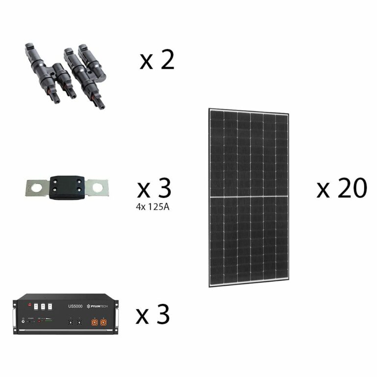 Neben der Leistungselektronik, dem Speicher und den Solarmodulen gehören sämtliche für den Anschluss benötigten Komponenten ebenfalls zum Lieferumfang, mit Ausnahme der Solarmodulhalter, welche separat bestellt werden muss. Alle übrigen Komponenten sind Plug and Play – das bedeutet keine lästige Steckermontage oder dergleichen – anschließen und fertig.
