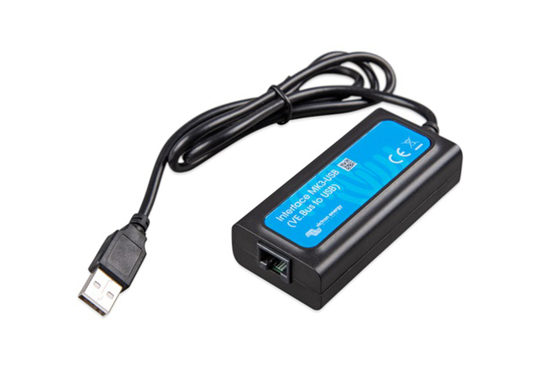 Das MK3 Interface wird für die Verbindung des Computers mit Victron Geräten mit VE.Bus benötigt. Ein zusätzliches Netzwerkkabel wird benötigt.