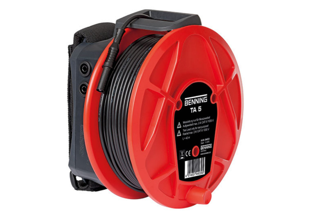 40 m Messleitung mit praktischem Aufwickler und Handschlaufe, zur Messung von Schutz- und Potentialausgleichsleiter, Anschluss: Ø 4 mm Sicherheitsprüfbuchse/-stecker