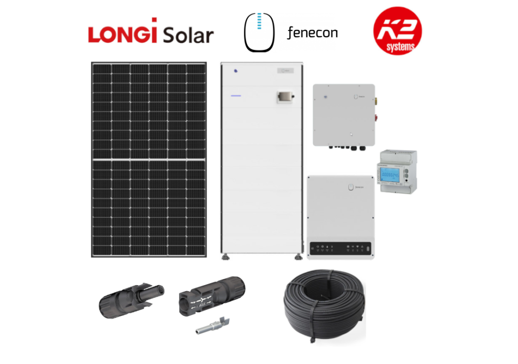 Photovoltaik Komplettanlage 8 kWp | LONGi Module + Fenecon Home 10 kW Hybridwechselrichter + Fenecon Speicher + Montagematerial