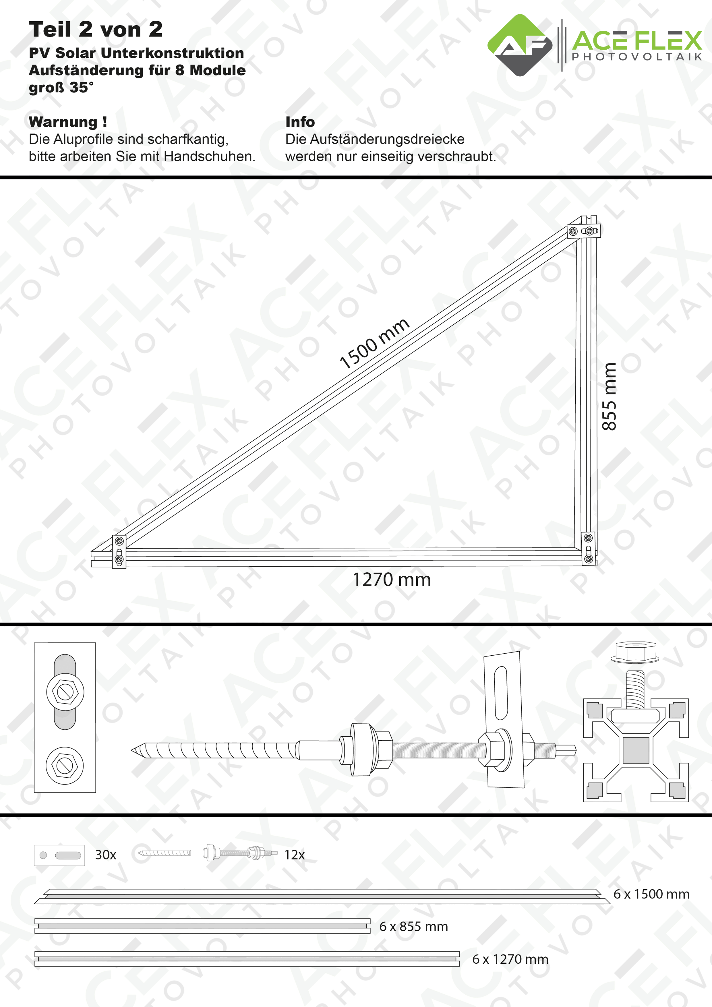 • 8 x Aufständerungsdreieck (35° Winkel)
