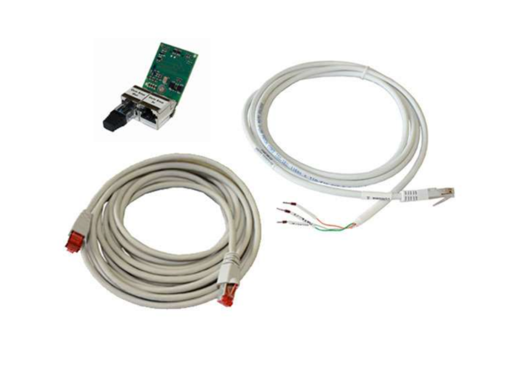 11/4.4M-11/6.0H-11/8.0H-11, 1x 5 m Kommunikationskabel (grau), 1x Adapterkabel (weiß) von RJ45 auf drei offene Adern, 1x Abschlusswiderstand (gesteckt), 1x Schraube, Montageanleitung