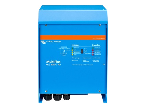 Der Multiplus 48/5000/70-100 von Victron (MPN PMP485021010) ist eine Gerätekombination aus 48Volt 4000Watt Sinus Wechselrichter und Batterie-Ladegerät.